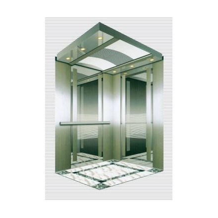 轎頂裝潢:發(fā)紋不銹鋼框架,中部是影像拱頂,亞克力裝飾
